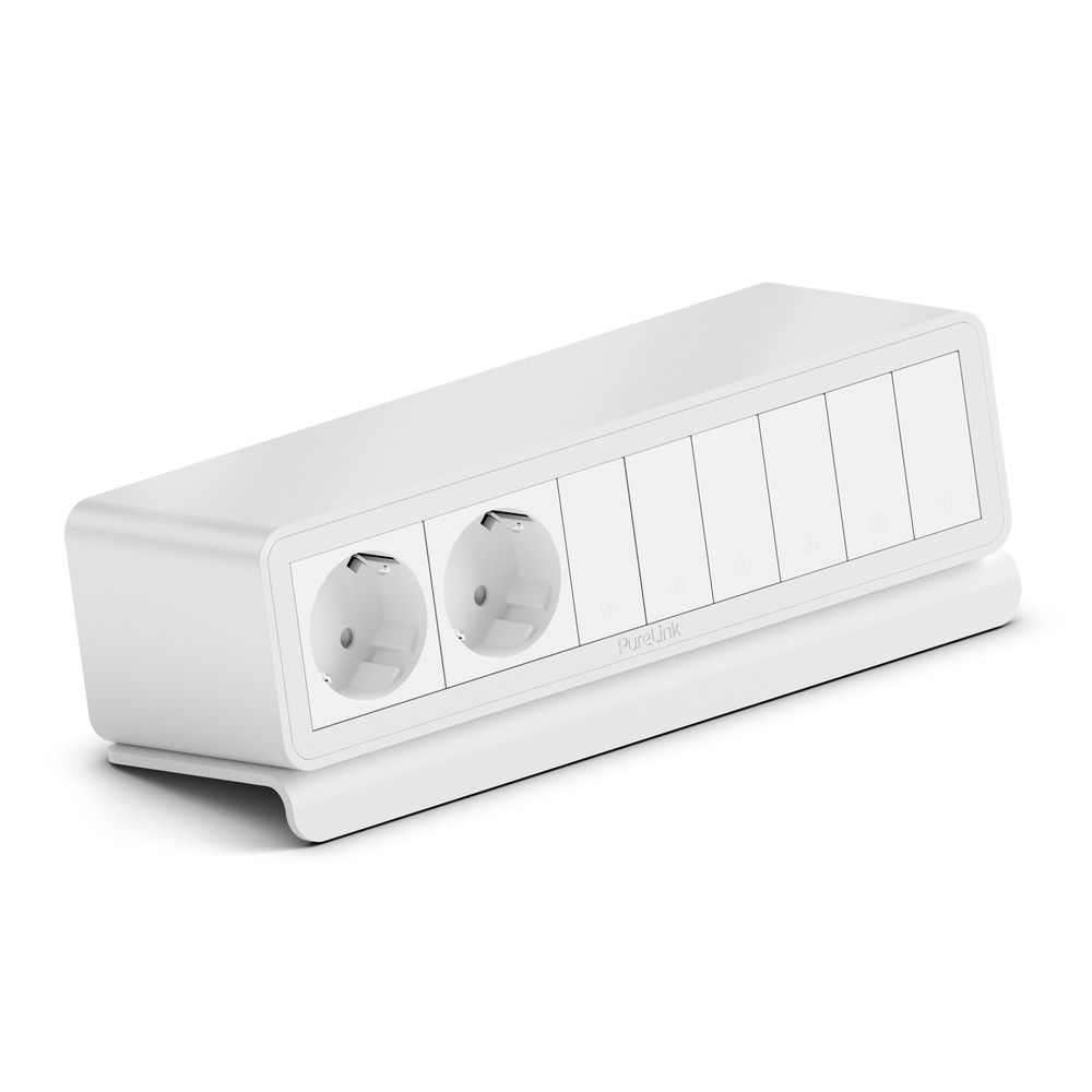 - Vorkonfiguriert mit zwei DE/EU AC-Steckdosen und sechs Rohlingen