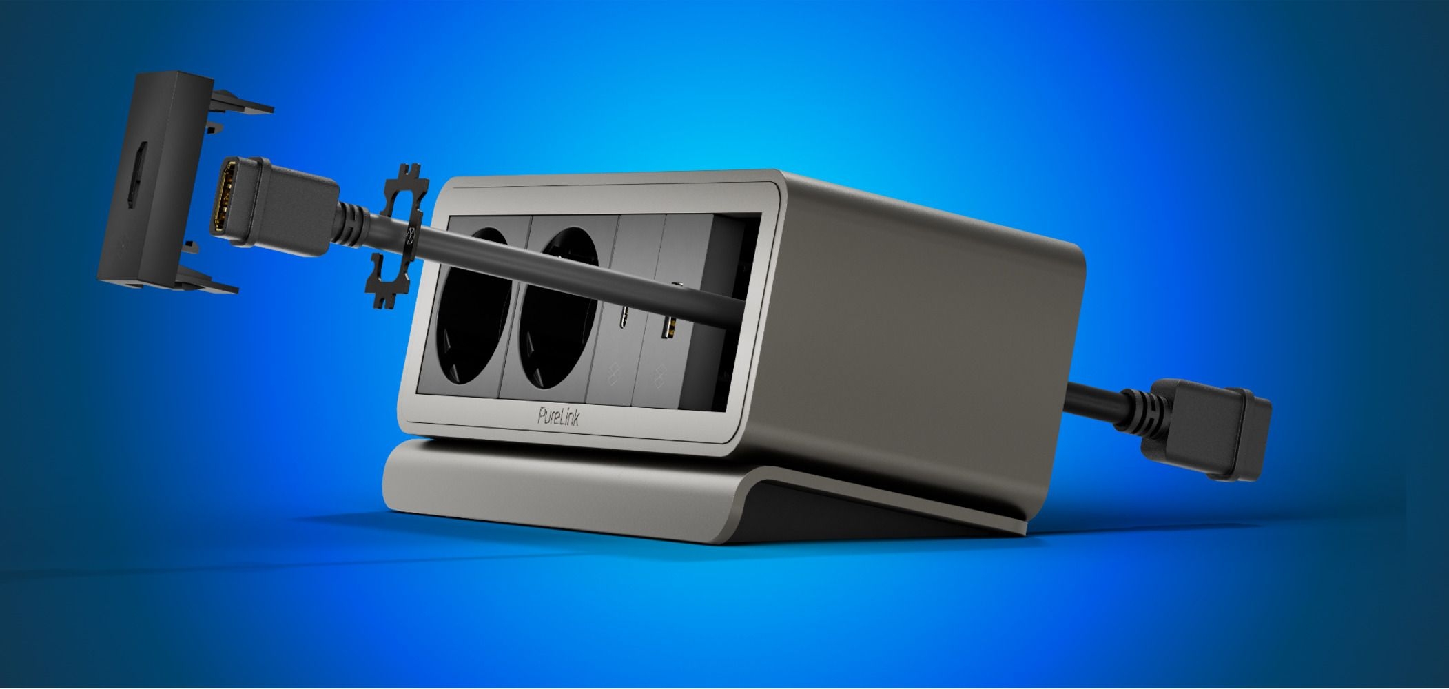 - Kompatibel mit allen konfigurierbaren Mediensteckplätzen, Kabeln und Halterungen aus der mediahub2-Reihe