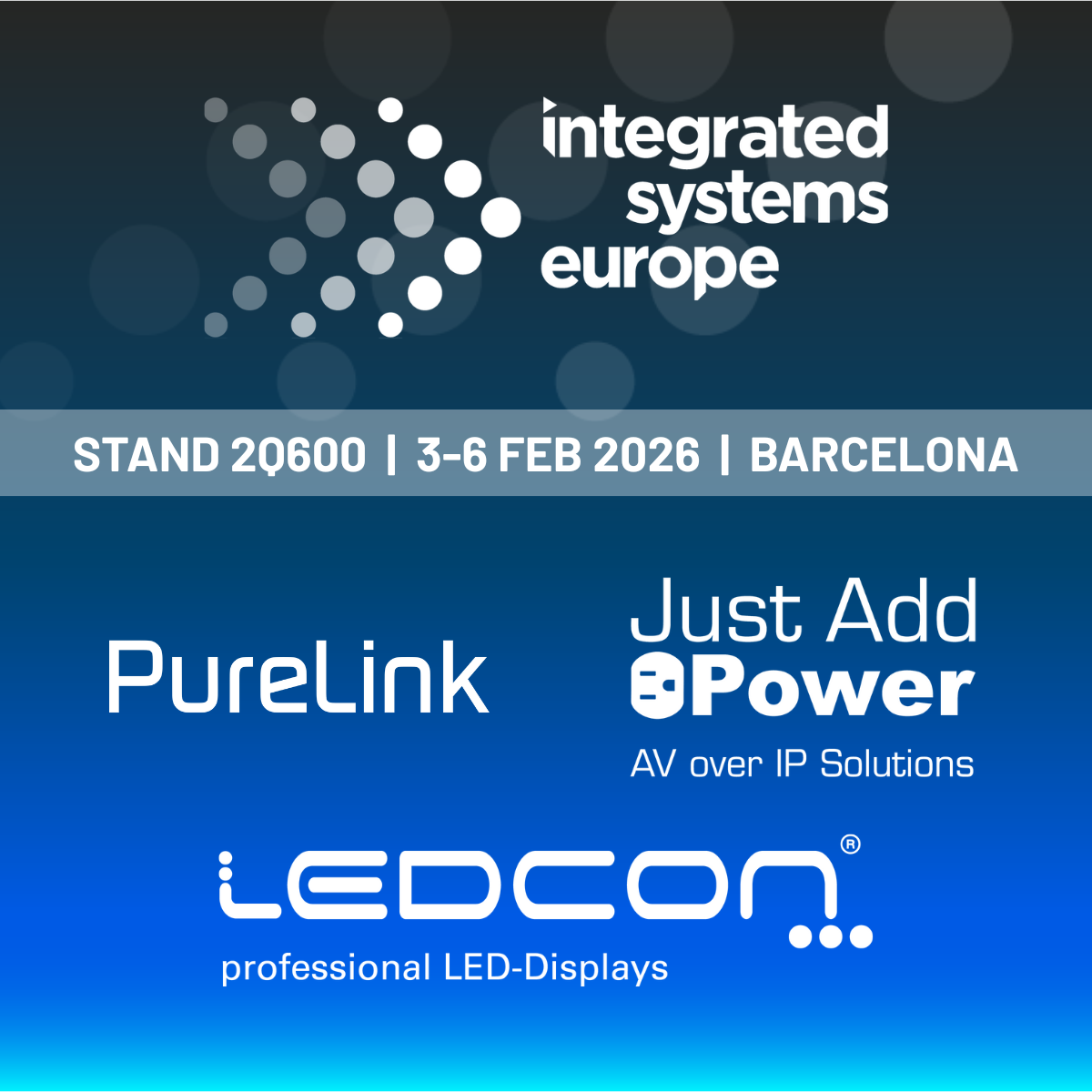 Auf der Integrated Systems Europe 2026 in Barcelona werden wir erneut von Just Add Power und LEDCON Systems begleitet. Gemeinsam an einem Stand stellen wir ergänzende Produktpaletten aus den Bereichen AV over IP, professionelle LED-Displays und AV/IT-Lösungen für anspruchsvolle Anwendungen in Konferenzräumen, Kontrollzentralen, Bildungs- und Unternehmensumgebungen sowie Digital Signage vor.