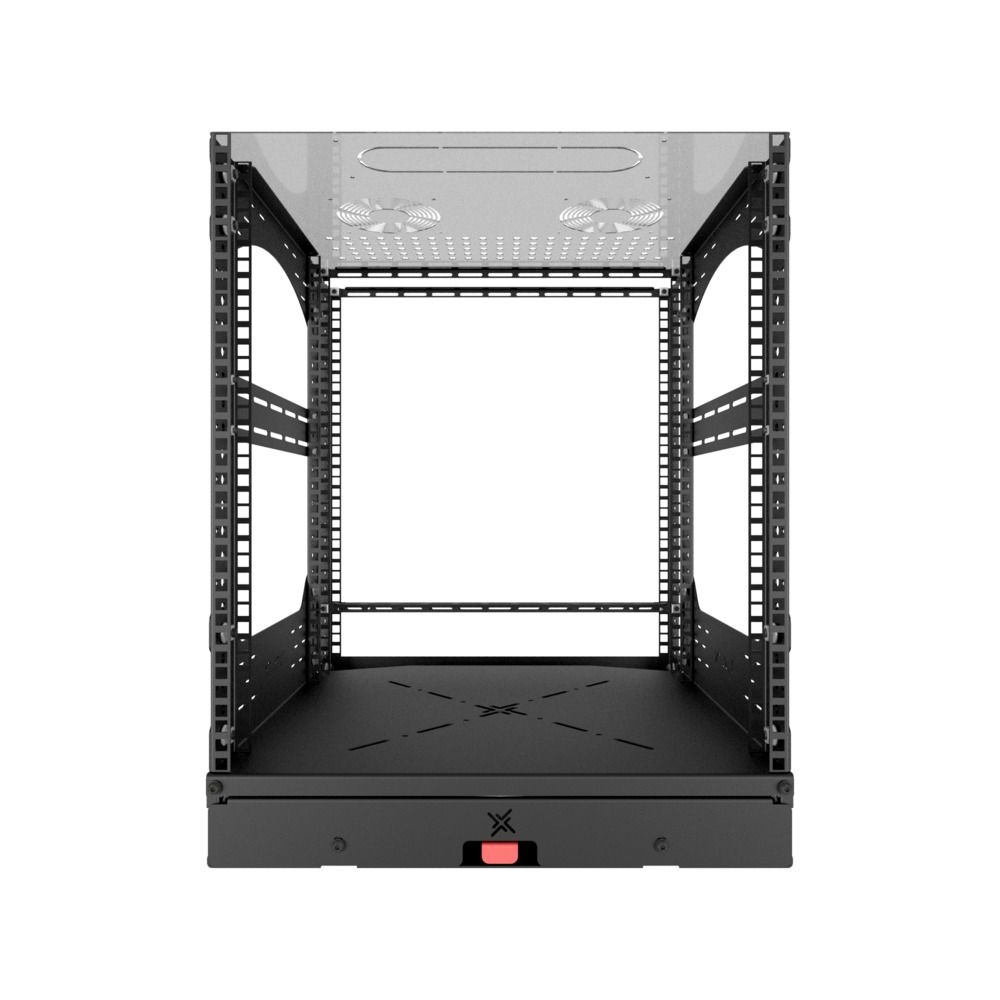 Für einen einfachen Zugang schieben Sie den Rackboden einfach heraus, verriegeln ihn und drehen ihn um 180° - perfekt für eine schnelle Installation und Wartung. Die mitgelieferten Kabelmanagementplatten und L-Schienenprofile sorgen für Ordnung in Ihren Systemen, während die optionalen Lüftereinbauplätze auf der Rack-Oberseite für eine gute Kühlung sorgen.