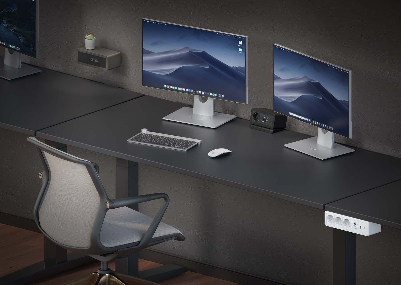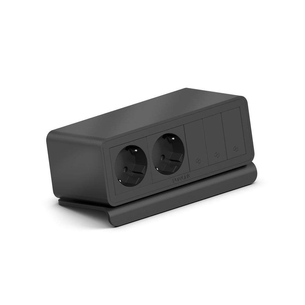 This mediahub2 enclosure consists of a 7-slot solid aluminium chassis designed for free-standing placement on table surfaces in meeting rooms, hybrid workspaces, or AV teaching environments. Its precision-engineered modules use the ICS (Individual Connection System), a tool-less, screw-free interface that maintains clean aesthetics while allowing professional-grade customisation in seconds. The enclosure arrives preconfigured with dual AC outlets and and three blank placeholders, enabling immediate deployment with future scalability. Fitted with an integrated 1m power cable and Wieland GST18 plug connector, the unit integrates directly into AV furniture power networks. Compatibility with all mediahub2 modules, cables, and mounting accessories supports fast adaptation to fixed or under-desk installations.