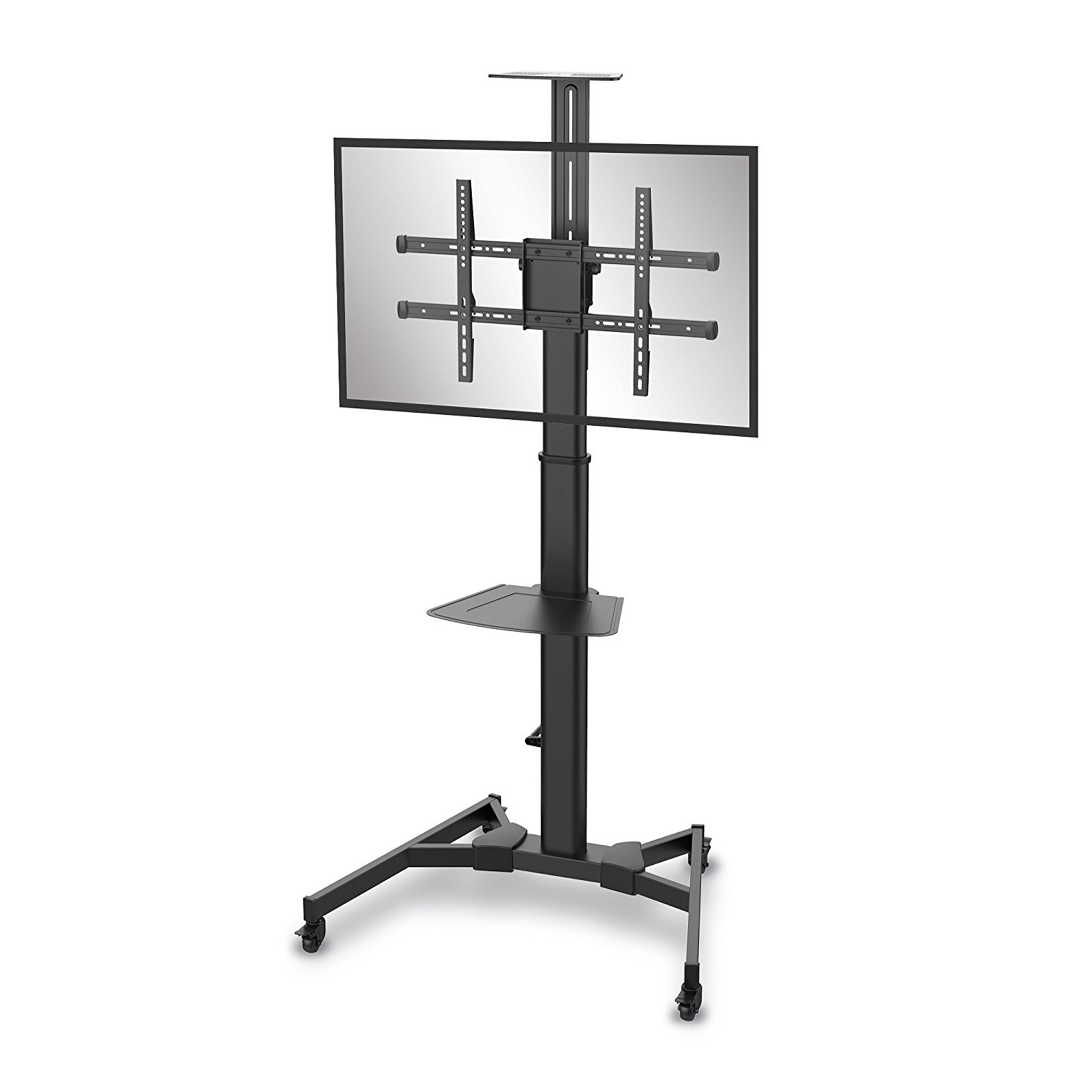 - PureMounts DS TV cart with max. load capacity of 50kg incl. camera tray and AV shelf (steel, 5kg) || VESA 200x200 up to 600x400 || Material: Steel / Plastics || Colour: Black