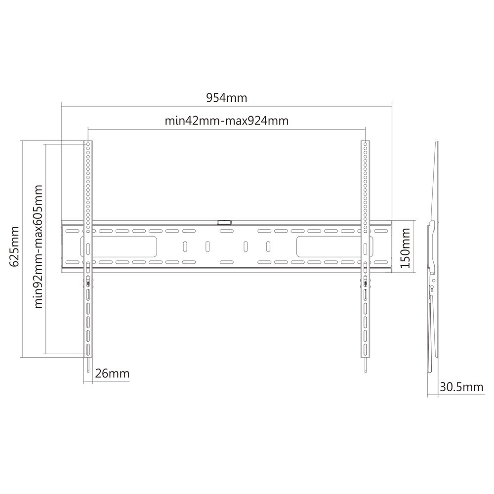Low Profile Wall Distance: With a wall distance of 30.5 mm, the mount keeps large displays close to the wall, supporting a streamlined and unobtrusive installation. This design minimises the visual footprint, making it suitable for meeting rooms and signage where aesthetics and space efficiency are priorities.