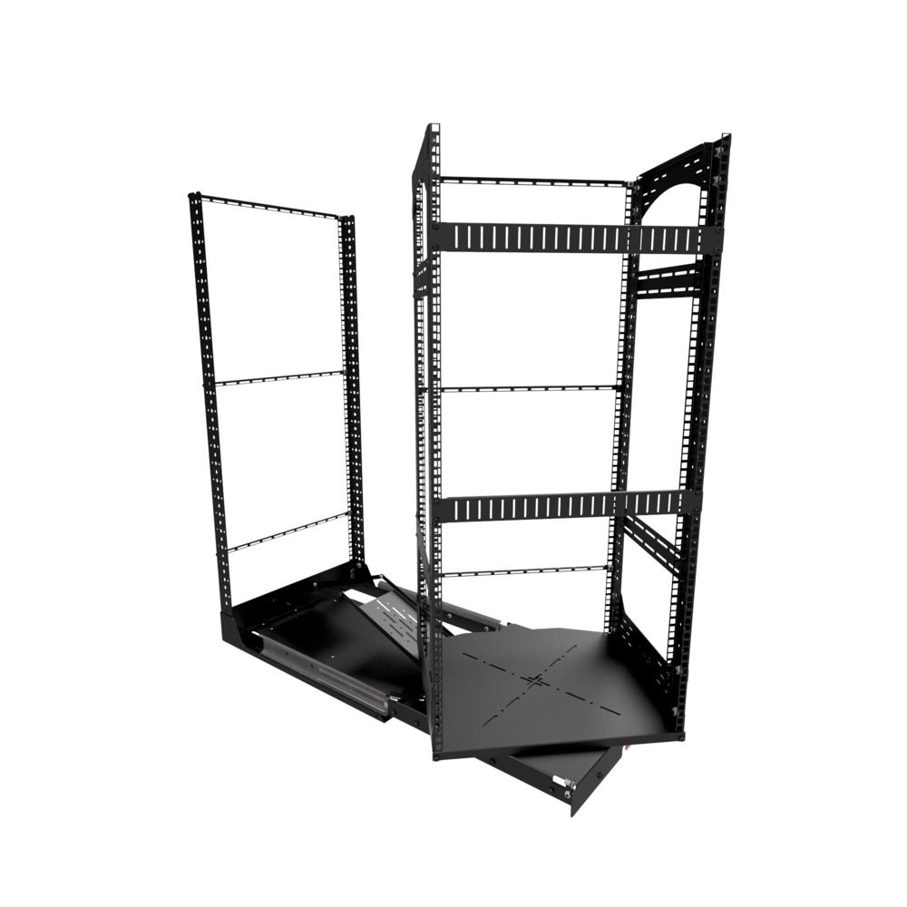 The 24RU Pull-Out and Rotating Rack is the ideal solution for event technicians and AV installers seeking a reliable and practical equipment management solution. Its robust construction and user-friendly design make it a valuable asset for any professional setup.