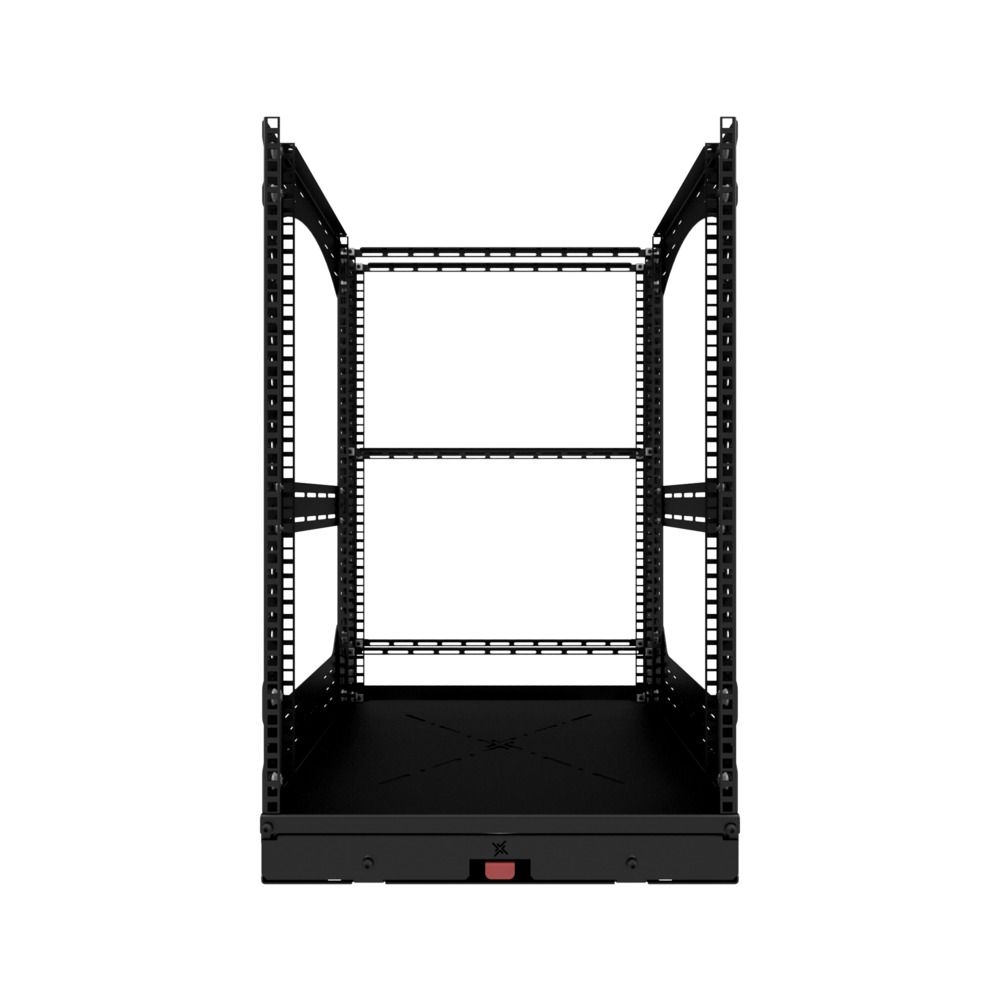 The V-MPR-MAX-510 is a heavy-duty 19-inch pull-out and rotating rack engineered for modular and heavy AV environments where accessibility and maintenance efficiency are critical. The design incorporates a pull-out mechanism with integrated rotation, enabling direct access to installed equipment from both front and rear without requiring rack demounting. This construction supports a wide range of rack unit configurations and is particularly suited for control rooms, technical workspaces, and signal management hubs. Flat pack delivery streamlines transport and on-site assembly, while a removable frontal rotative bay facilitates rapid device changes or servicing in compact installations.